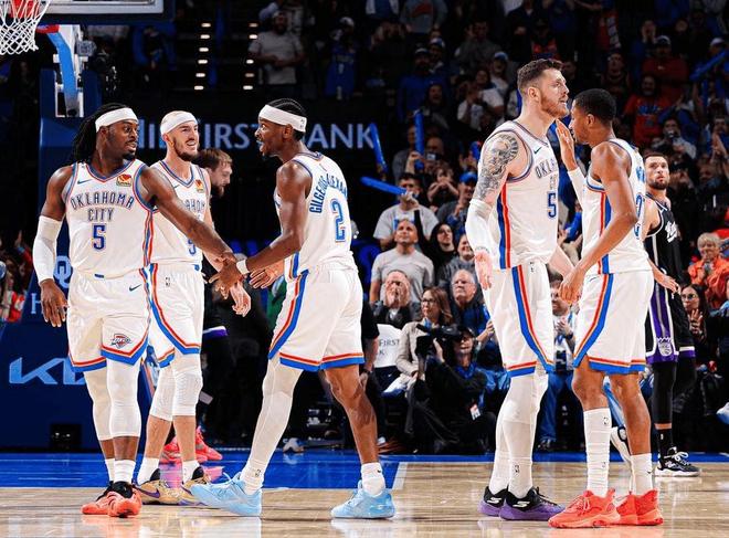 另一个,雷霆能打的球员也多,除去今夏刚顶薪续约的新三少亚历山大,杰伦威廉姆斯,切特霍姆格伦,球队场均得分超过10分的还有哈腾,威金斯和阿杰伊米切尔三人。尤其米切尔,进步神速,前六场场均能得到18.5分3.3篮板2.8助攻,他甚至只是一个二轮秀,上赛季场均只能得到6.5分。不得不说,雷霆选秀眼光也是一绝,有句话怎么说的,雷霆出品 必属精品。狂轰6连胜!联盟第一,新赛季最有冠军相的球队,NBA要大结局了。非得说一个西部赛区雷霆最大的对手,估计是火箭,火箭前5场两连败后又三连胜,及时调整了状态,但火箭想要过雷霆这关,必须先解决他们的后卫短板,至少在范乔丹受伤后,搞来一个合格的首发控卫才行,你们觉得呢?